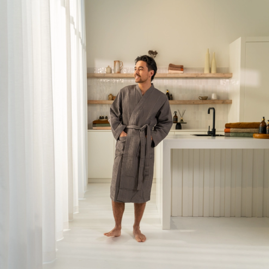 De voordelen van een katoenen badjas zijn talrijk. Katoen is van nature ademend en vochtabsorberend, wat betekent dat de badjas je lichaam droog houdt zonder dat je in een benauwd gevoel komt te zitten. Het materiaal zorgt voor een natuurlijke luchtcirculatie, waardoor je de hele dag door een comfortabel gevoel hebt, zelfs als je de badjas langer draagt. Dit maakt het ideaal voor gebruik in elk seizoen – het houdt je warm na een douche, maar is ook licht genoeg om je koel te houden in warmere maanden.