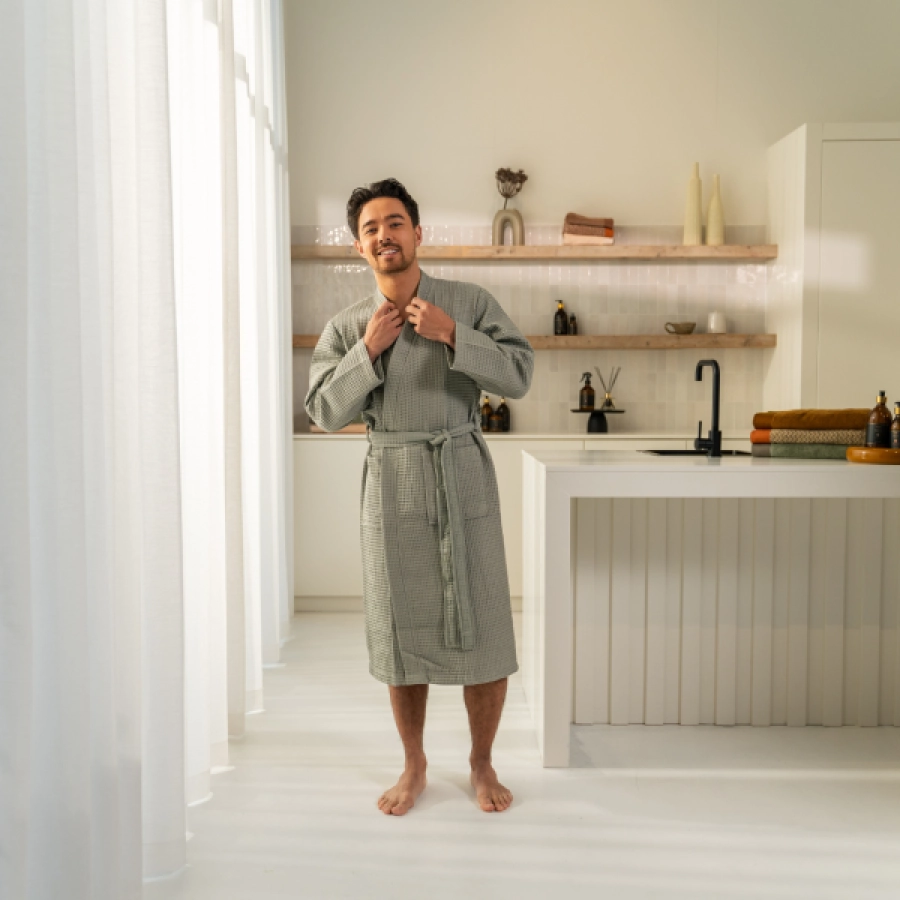 De voordelen van een katoenen badjas zijn talrijk. Katoen is van nature ademend en vochtabsorberend, wat betekent dat de badjas je lichaam droog houdt zonder dat je in een benauwd gevoel komt te zitten. Het materiaal zorgt voor een natuurlijke luchtcirculatie, waardoor je de hele dag door een comfortabel gevoel hebt, zelfs als je de badjas langer draagt. Dit maakt het ideaal voor gebruik in elk seizoen – het houdt je warm na een douche, maar is ook licht genoeg om je koel te houden in warmere maanden.