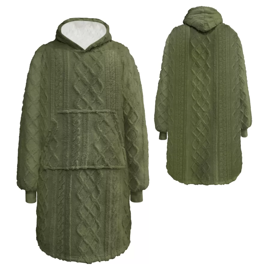 De Home Hoodie in groen is gemaakt van een superzachte kabelstof en heeft een extra lange, comfortabele pasvorm (one size). Perfect om jezelf mee te omhullen tijdens ontspannende self-care momenten of cozy avonden thuis.