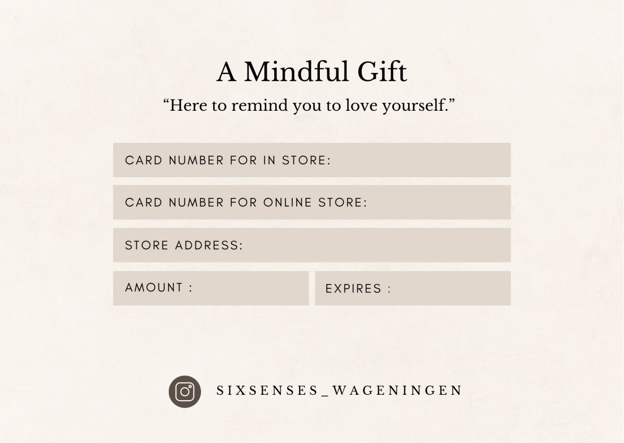 Ontdek de ultieme ontspanning met onze selectie aan Mindful Gift Cards, perfect voor zowel online als in-store aankopen bij Six Senses Wageningen.