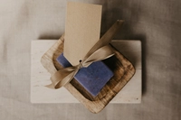 Houdt jij van puur & geef jij graag iets puurs cadeau? Deze mooie kalmerende zeep pakken we altijd luxe in op een sierlijk houten zeepschaaltje, we strikken er een handgeschreven kaartje aan met de 100% natuurlijke ingrediënten en we sluiten het cadeautje helemaal af met een sprekende strik bovenop.