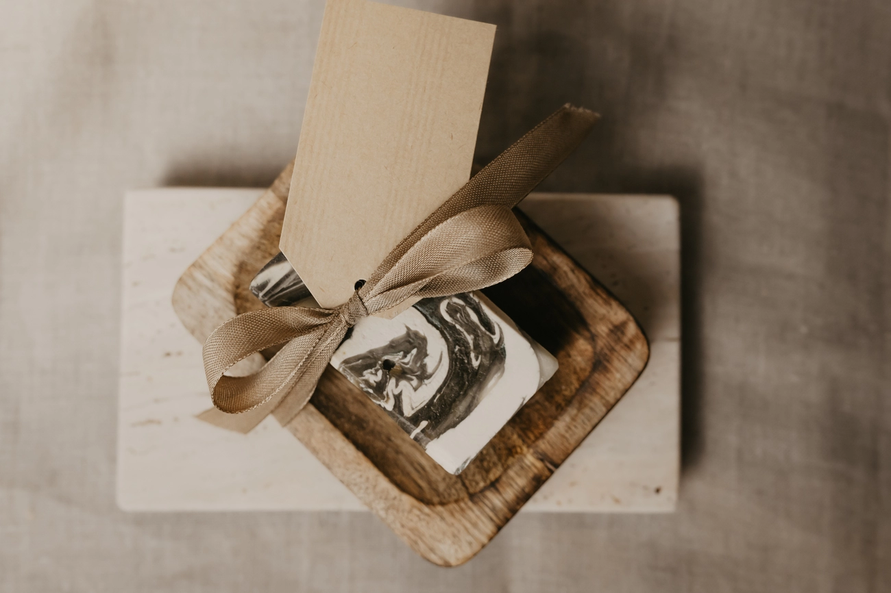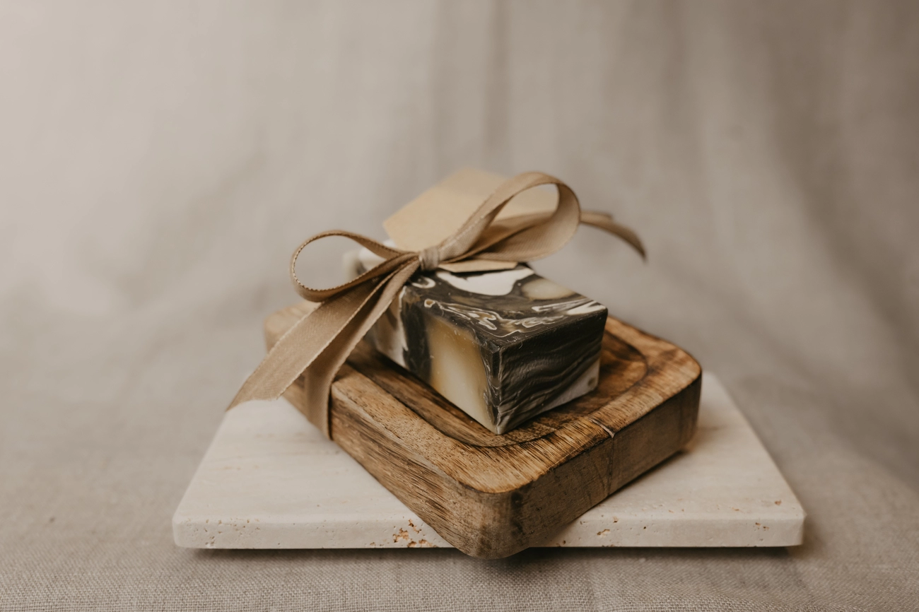 Houdt jij van puur & geef jij graag iets puurs cadeau? Deze mooie kalmerende zeep pakken we altijd luxe in op een sierlijk houten zeepschaaltje, we strikken er een handgeschreven kaartje aan met de 100% natuurlijke ingrediënten en we sluiten het cadeautje helemaal af met een sprekende strik bovenop.
