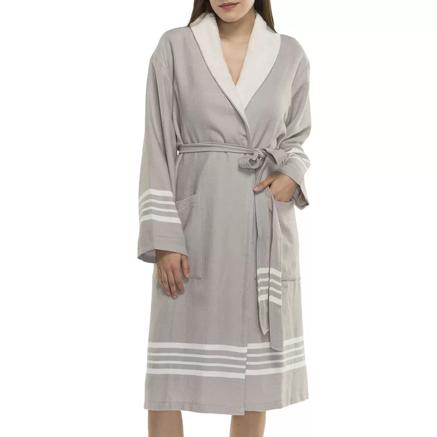 Gemaakt van hoogwaardig katoen, omhullen deze badjassen je in de weelde van een zachte, ademende stof. Of je nu ontspant na een warm bad of geniet van een luie ochtend, de natuurlijke zachtheid van katoen biedt een verfijnde comfortervaring. Verwen jezelf met het ultieme gevoel van welbehagen en ontspanning, elke keer dat je jezelf in een van onze katoenen badjassen laat omhullen. Comfort, geweven in elke vezel.